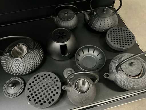 Bredemeijer Cast Iron teapots + 4 coasters (5x)