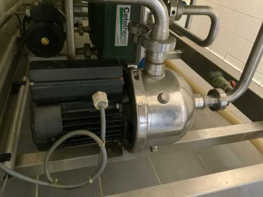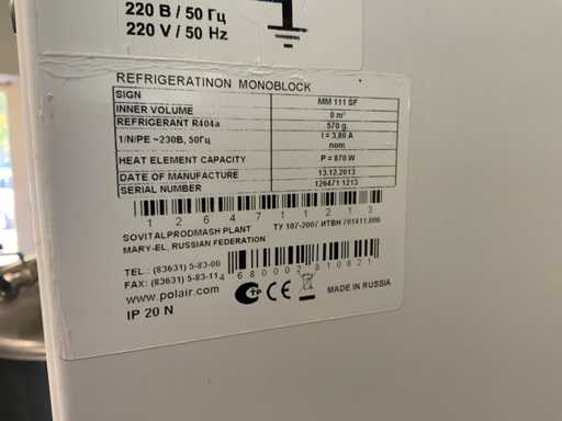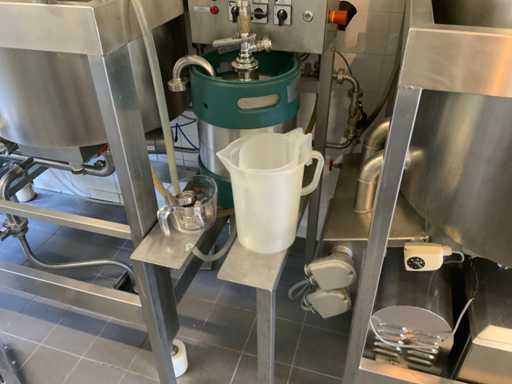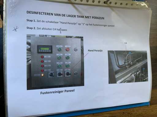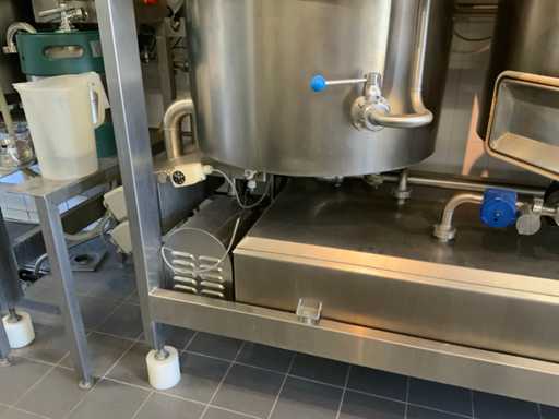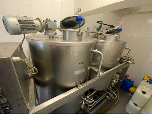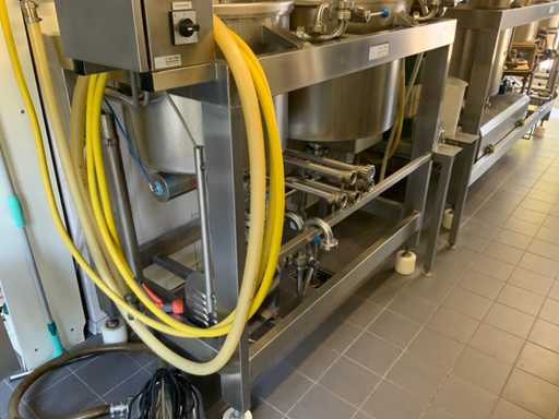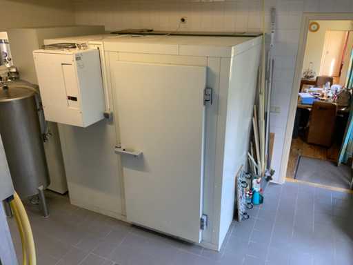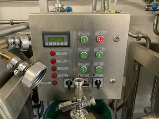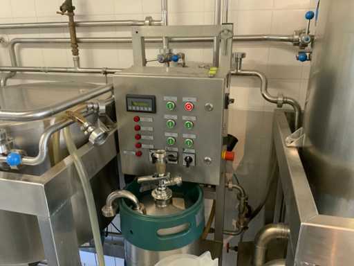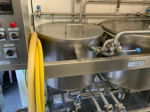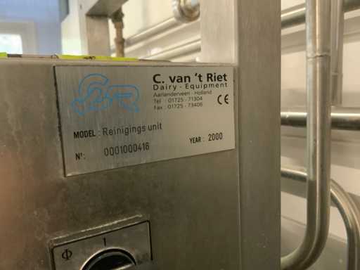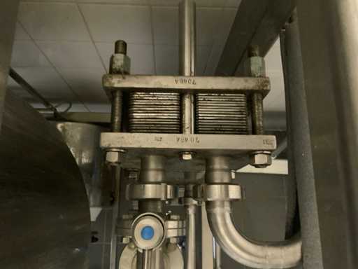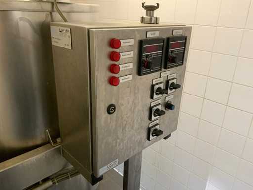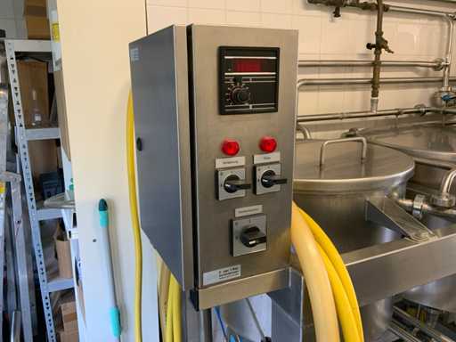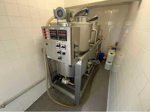 Equipped with cold room with cooling unit "Polar MM 111 SF" (recently replaced, internal dimensions: D1890 x W1920 x H1960 mm); 5 lagering vessels of 200 L; 1 filling vessel of 200 L with stirring mechanism driven by Nord SK 64L/4 engine (0.18 kW); Rotor pump for filling beer kegs; extra pump from C. van 't Riet for transport of main fermentation liquid to lager vessels; complete brewing installation type 9711000116, year of construction 1997 (920x3000x2100 mm); mash tun 250 L with Nord agitator and indirect heating via double-walled water storage (2 x 6 kW heating elements, expansion to 18 kW possible); 250 L flush filter kettle with perforated filter plate, arrow glass, back-filter mechanism, cleaning hatch (235x185 mm); boiling kettle 250 L with oil-filled double-walled heating (2 x 6 kW + expandable), insulated lid with spray ball and stainless steel NW100 condensation pipe, fan and water nebulizer; 157 L collection and outlet container with sloping bottom, NW50 spout; control cabinet with digital temperature control and software; CIP unit type 0001000418, year of construction 2000 (890x1610x1710 mm), with two stainless steel cleaning boilers of 100 L each, double wall with indirect heating (2 x 6 kW), FP4600 cleaning pump, separate stainless steel control box and full piping set; Yeast installation type 9711000216, built in 1997 (1100x2300x1900 mm); two double-walled main fermenters of 280 L with cooling water circulation, agitator, spray ball and aeration pipe; plate cooler type Sigma 7 (300 L/h capacity, 7000 L/h cooling water); chiller model TEA 081 (cooling capacity 27 kW, 1650x743x1350 mm, max. 8 kW); 2 plate heat exchangers type 410/40; 2 stainless steel frames, adjustable in height; extensive stainless steel piping including butterfly valves, T-pieces, point pieces, cooling pipes and sight glass; digital pH meter HI9024; insulated grow box with ventilation and temperature control (440x640x480 mm); thermostatic mixer (50–90 °C, with thermometer connection); Water meter with electronic readout and optional PC connection.
