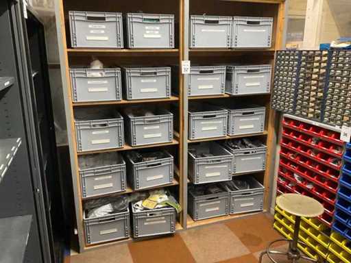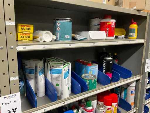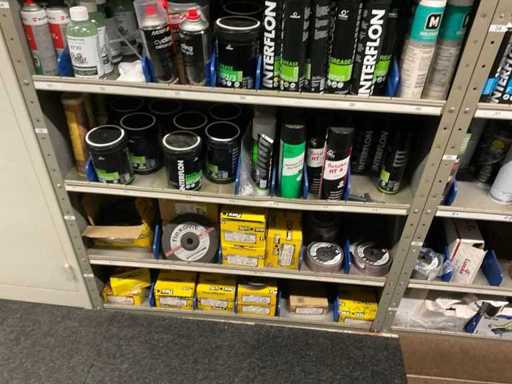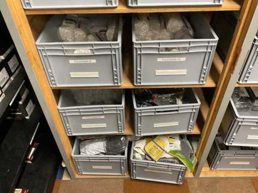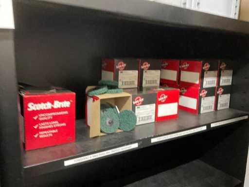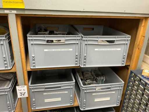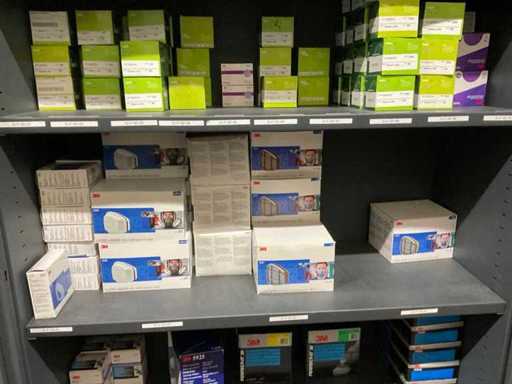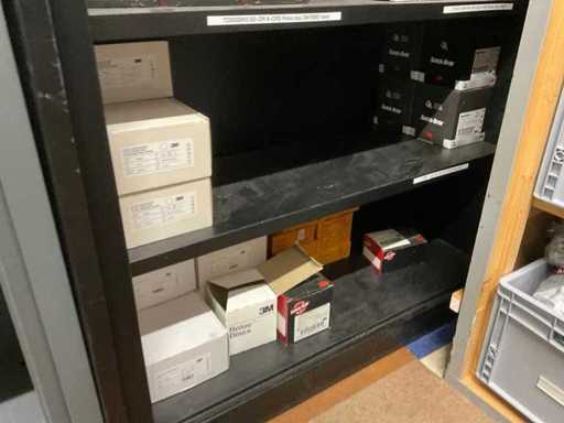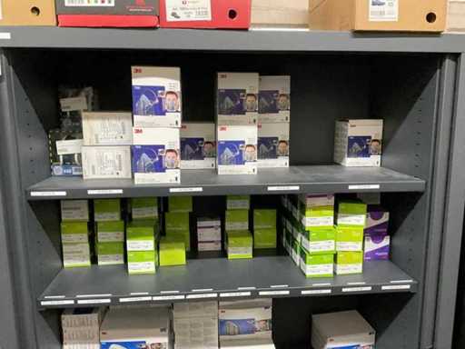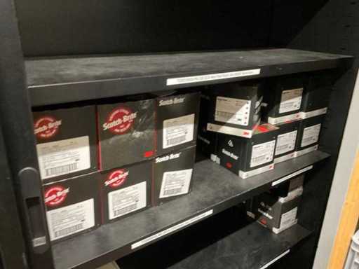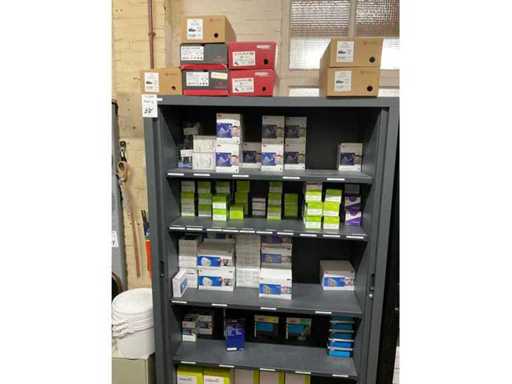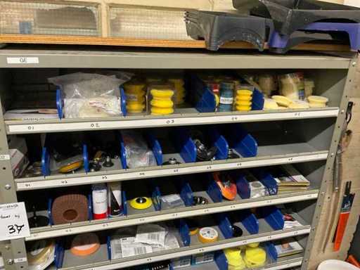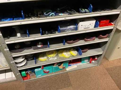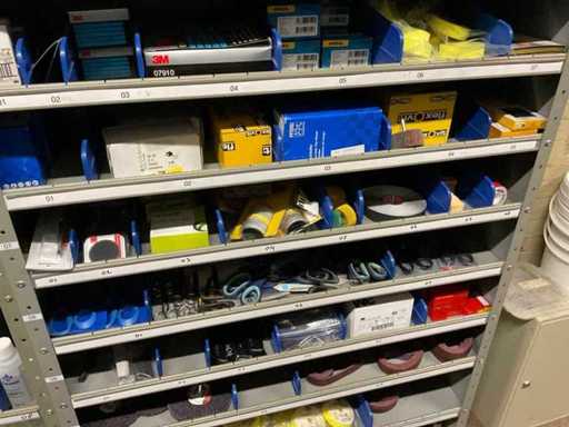 Consisting of: face masks, gloves, abrasives, lubricants, removers, etc. Includes: (5x) cabinets and plastic bins.