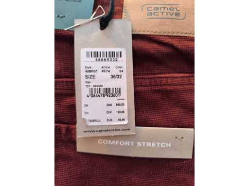 CAMEL ACTIVE - Burgundy red stretch comfort pants - Size W36/L32 - New item with tag - new price tag 99€95 (see photo)