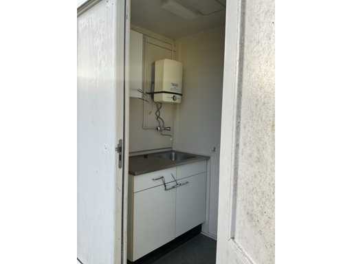 Equipped with: hooklift loading frame, countertop with close-in boiler, toilet, shutters, aluminum frames, electric heating, group box