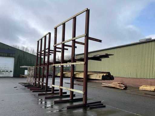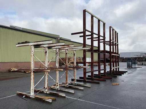 2x approx 445x245x560 cm, section depth 118 cm, not detachable, 1x double cantilever rack approx 238x138x250 cm, section depth 110 cm, detachable.