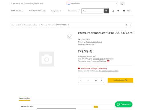 Carel SPKT00G1S0 Pressure sensor 0-5V, 0/60bar, 7/16" female (8x)