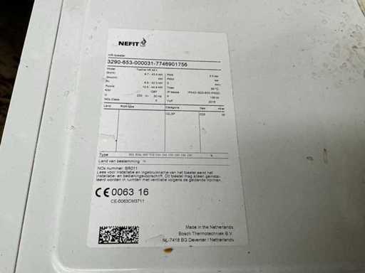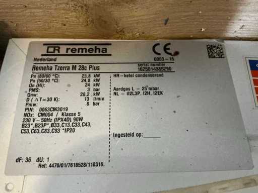 On 3 pallets, consisting of: Nefit Topline HR 45, Remeha Tzerra M28c Plus, Nefit Proline Hrc 24 CW3, Remeha Tzerra Ace 24, and various maintenance material.