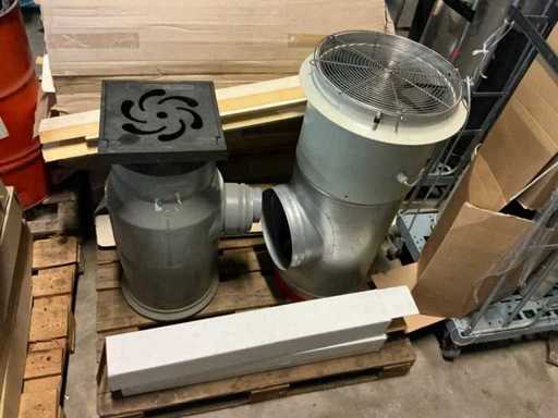 On 5 pallets and 2 roll containers, consisting of, among other things: 3x roof hood, insulation, drain, ventilation duct, various roof duct materials and mounting brackets