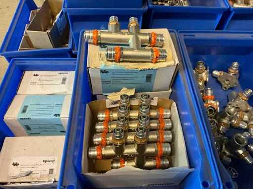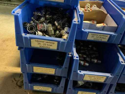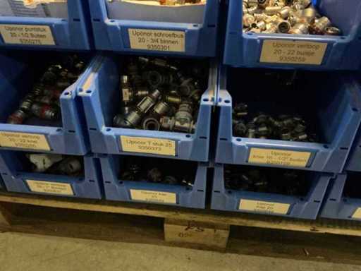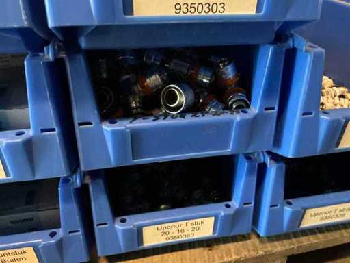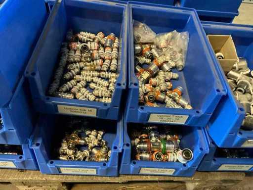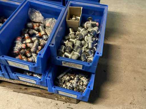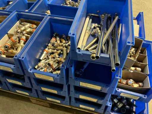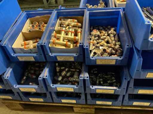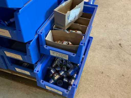 On 4 pallets, consisting of various couplings in storage bins