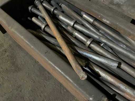Box approx. 130x35x27 cm including pointed chisels with round collar.