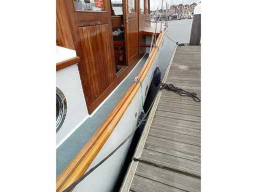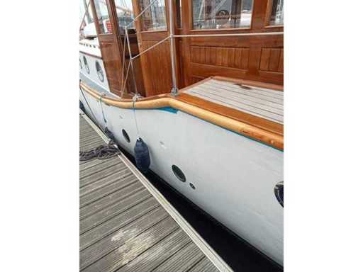 Lady Kathryn (Ledora) built in 1929 at rock ferry Liverpool. In current ownership for the last 18 years. The sale is due to advancing age and health reasons. Originally with twin scrips petrol engines. Re engined in 1964 with twin marinized perkins P6 units. Fully serviced to date. Including a spare starter motor and various spare parts on board. Recently fitted with a new custom made diesel fuel tank (700 litres stainless steel). Wheel house has recently been sanded and revarnisehed by specialist boat builders. The engine was serviced and new battery fitted. Full hot and cold running water with stainless steel tank. VHF, Air blown heating system and dickenson diesel burners. Forward berth + two single bunks, full electric power points and sink with hot and cold running water. Fully equipped galley including full size gas oven, 4 ring burner, under counter fridge. Galvanised anchor with 200ft of galvanised chain in the chain locker. Lots of spares included in the sale includes refurbished starter motor & water pump. Full out of water survey september 2023 (document), Boat safety valid until 15th Sept 2027 (see attached), new Douglas rubbing strake (47metres) with 1 inch brass edging, New Buttery fly hatches being constructed from African redwood, new chrome rails and glass made to original spec will be fitted prior to sale, the Lady Kathryn featured in the remake of Whiskey Galore as the custoims cutter, Officially requisitioned three weeks after Dunkirk (owned at the time by a naval officer), it is belived to have been used at Dunkirk but due to having petrol engines at the time was not on the Diesel register, served until 1947 when it returned to private ownership. The owners has bills going back to the 1980's. Currently on a residential mooring in Ipswich. The owner has lovingly maintained the Lady Kathryn and is now reluctantly looking for the next owner to continue the life of this fine vessel.