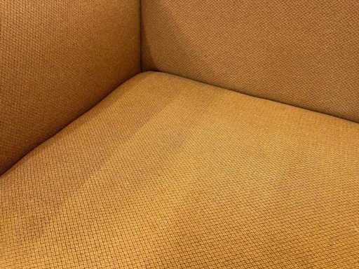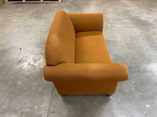 shape are convex and the rear is straight. The soft, ochre yellow-orange upholstery