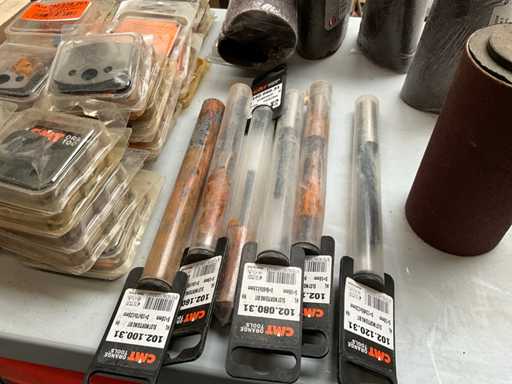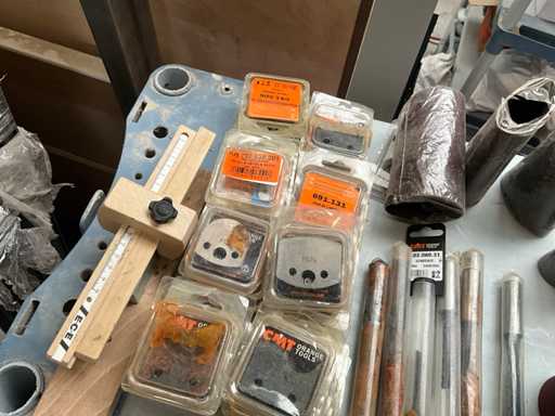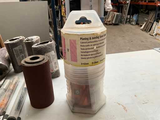 Including spiral milling head, various radius knives, straight milling bits, 4x sanding belt complete with 2 different saw blades