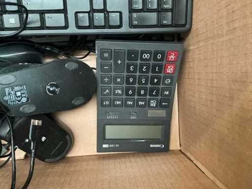 3 keyboards brand Dell, 10 mice, 1 calculator