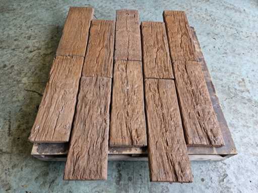 Dimensions approximately: 22.5 cm x 67.5 cm x 50 mm. Designation: Timberstones. Number of pallets: 5. Pick up the lot can be done on May 13 in Hulst - The invoice from Troostwijk must be paid no later than May 5. - When paying after this date, pick-up is only possible by appointment! - For delivery, please contact veiling@dbtrading.nl no later than May 7, stating the lot number, invoice and delivery address. - Delivery costs in the Netherlands - First lot €110.00 ex VAT - Lots 2 to 5 € 75.00 ex VAT per lot - From 6 lots a fixed rate of €450.00 applies - Delivery to the Wadden Islands and Belgium on request! - IMPORTANT! - The unloading address must be easily accessible for a truck with trailer. This truck can unload a maximum of 4 meters next to the truck. The driver does NOT have a pallet truck/Kooijaap at his disposal.