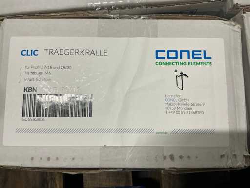 For mounting rails, 27/18 - 28/30, connecting thread: M6, Packed in 17 boxes of 50 pieces per box. Product number: CCLTKR2718
