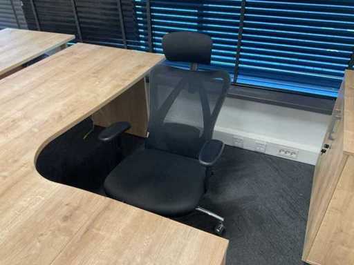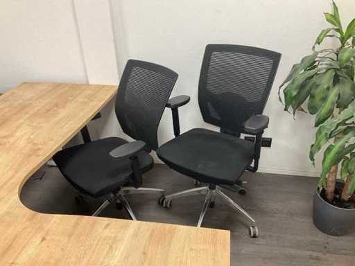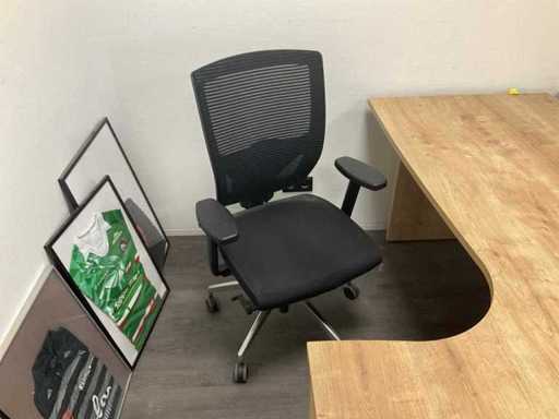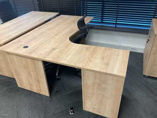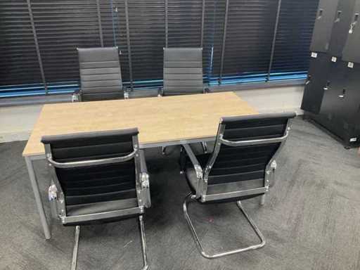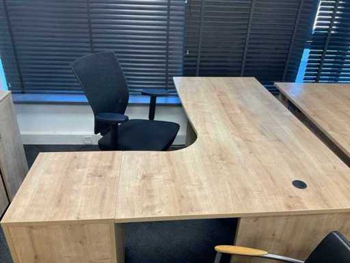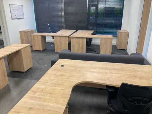 Consisting of: 5 desks, 5 office chairs, 2 low filing cabinets, 3 office chairs, conference table with 4 chairs, promotional material and sofa. You must bring everything with you.