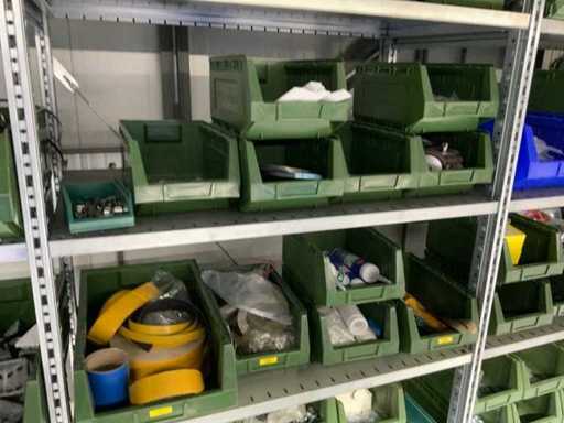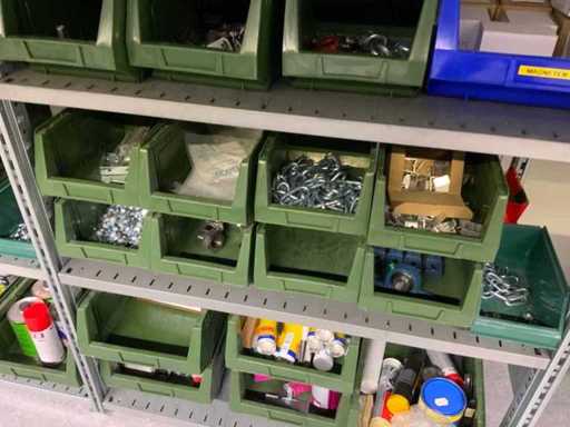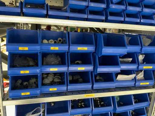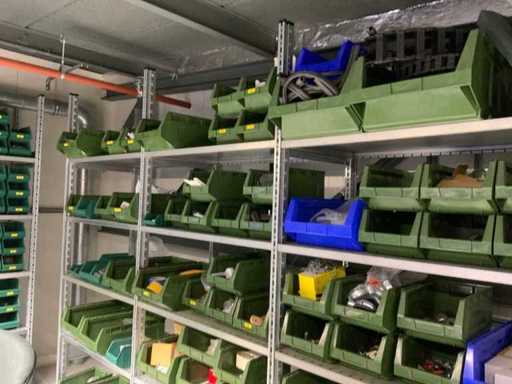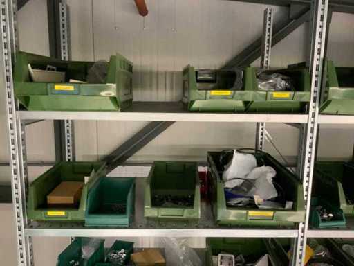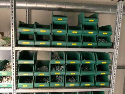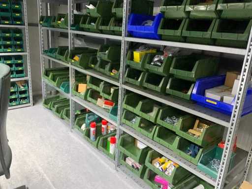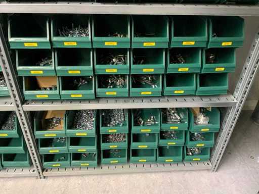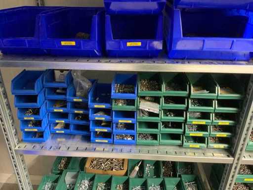 Contents of installation materials (approx. 500 sorting bins) of 9 shelving units