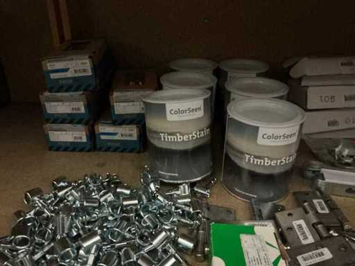 Consisting of: bolts, grinding wheels, spatulics, paint, hinges and locks, etc.
