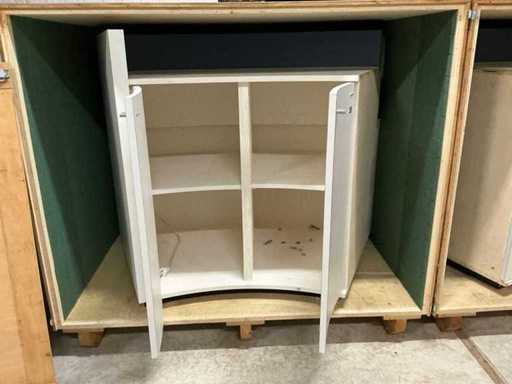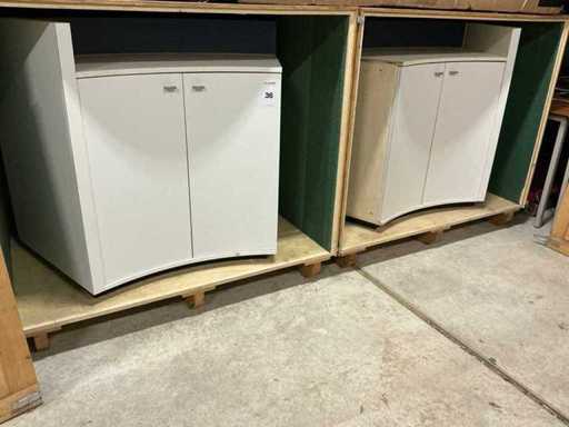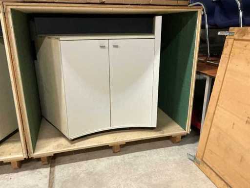 Counter furniture for trade fair, connectable consisting of 2 parts, In and including 2 transport boxes (147x92x129cm)