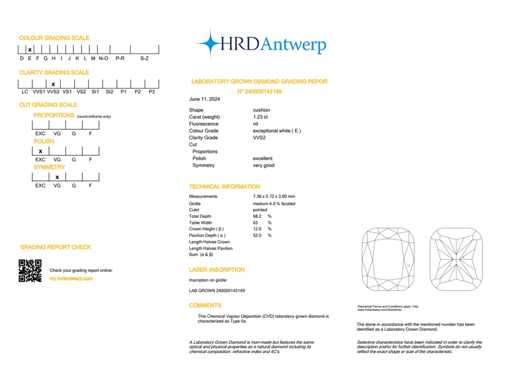 Cushion diamond 1.23ct – E/VVS2 – HRD