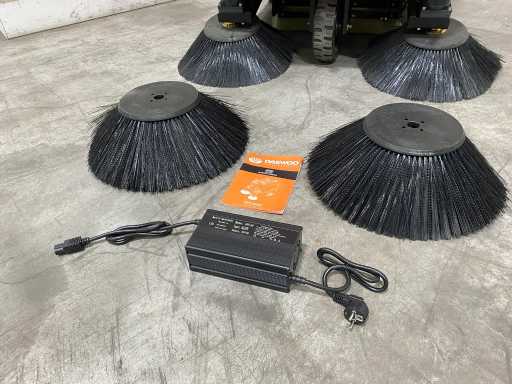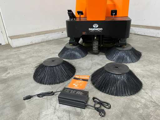 Additional information Self-propelled sweeper Brand: Daewoo Type: DAS80 Working width: 125 cm Collection container: 80 litres Equipped with: Water tank and sprinkler system Battery: 48 volts / 65 Ah Working time: 2 to 2.5 hours of continuous power Maximum speed: 10 km/h Power: 2 x 700 watt electric motor Brushes: 2 side brushes (⌀ 40 cm) & 1 middle brush (⌀ 50 cm) Equipped with: LED lighting & beacon Seat: Adjustable seat Includes: Battery charger Includes: 2 spare brushes Condition: Unused, in the original packaging Dimensions: 160 x 125 x 130 cm Weight: 396 kg