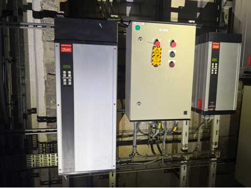 1 regulator for 17.20 KVA; 1 controller for 9.30 KVA; 1 control box with controls; 1 regulator is 810 mm high; 330 mm wide and 290 mm deep; 1 regulator is 530 mm high; 250 mm wide and 190 mm deep; control cabinet is 600 mm high; 410 mm wide and 210 mm deep; is dismantled and prepared for transport by the seller;