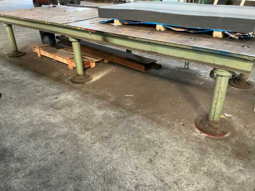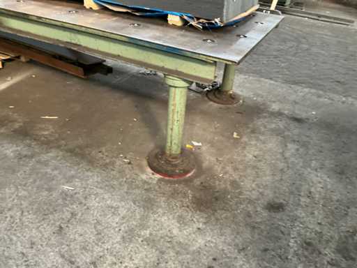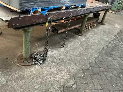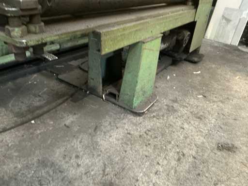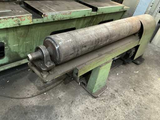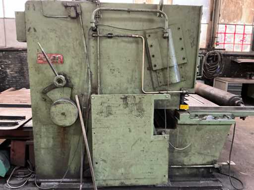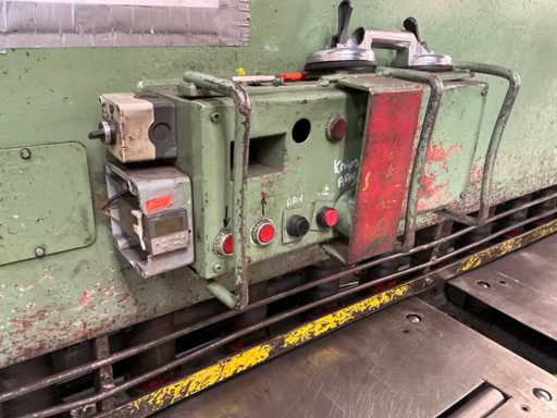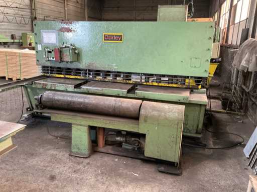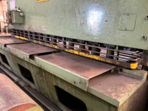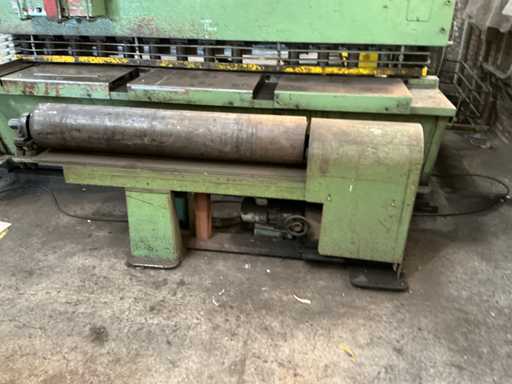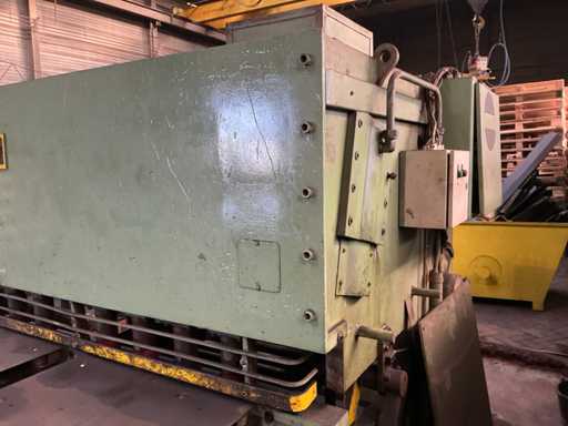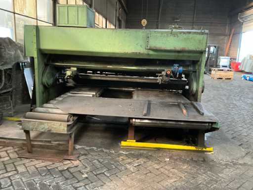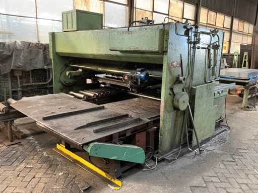 Equipped with feed roller and feed table, dimensions guillotine approximately 3800x4300x2400mm, length roll approximately 1500mm, dimensions feed table approximately 5000x1550x930mm.