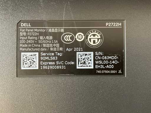 (P2722H) 27", 1920x1080 (FHD) IPS Monitor; - Excl. power and connection cables.
