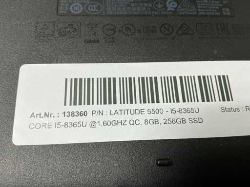 Laptops, Dell Latitude 5500, CPU: Intel Core i5-8365U@1.60GHz QC, MEM: 8GB, SSD: 256GB, no adapter ( cleaned and tested ) [ID: 138360]