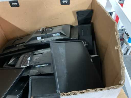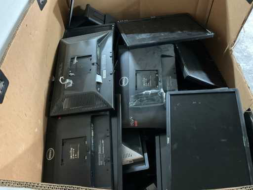 Large batch of monitors in pallet box. Monitors have various damages or are missing the base. The number and operation of these devices has not been checked. Ex US military items