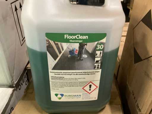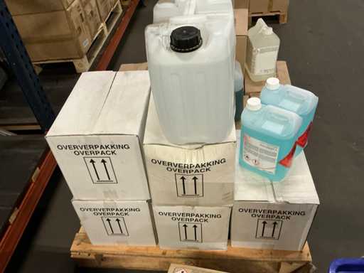 14 boxes with various numbers; Sanitary cleaner and distilled water