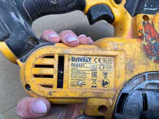Lot of DeWalt cordless tools, offered as one lot. Consists of several machines for sawing and screwing, visibly used but complete as photographed.