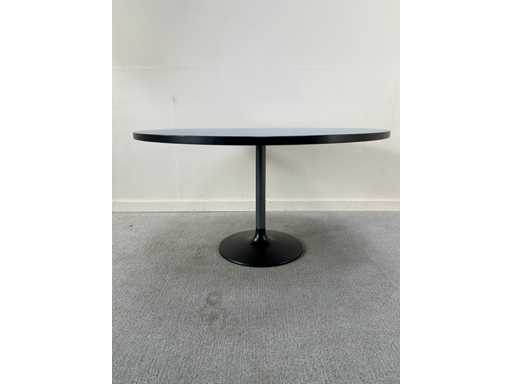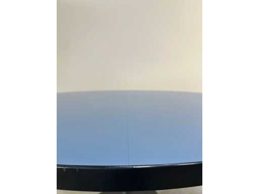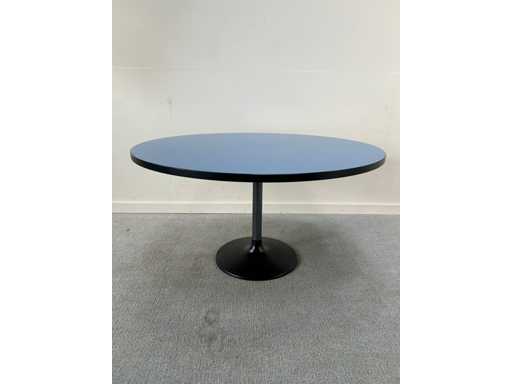 Dietiker Switzerland round table with a blue top and an elegant, stable metal base. The design combines Swiss quality with a modern look, ideal for meeting rooms, canteens or creative workplaces.