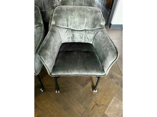 handrail 82 cm; seat height 53 cm; width 59cm; velvet green; on wheels; used