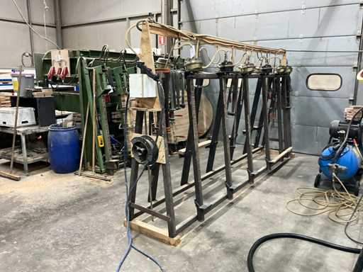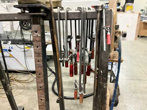 Working height 15 possibilities, 11x pneumatic clamp, various glue clamps, Pneumatic glue gun, 5x unused air connection