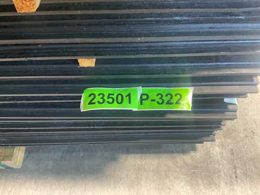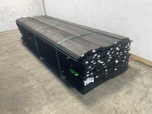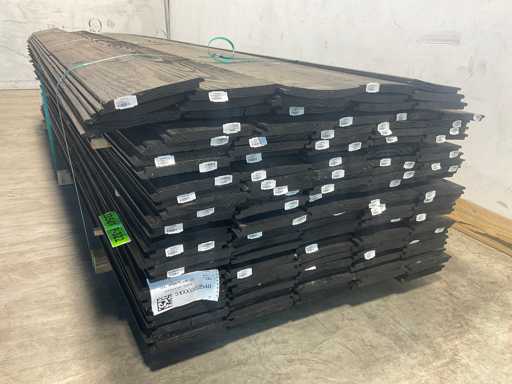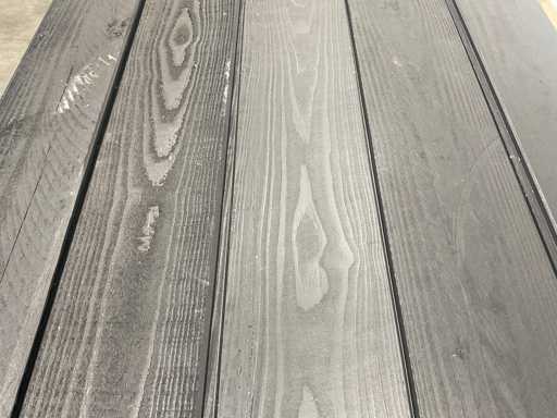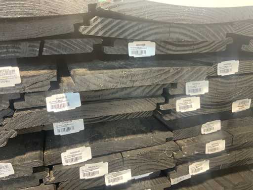 Douglas rebate board, with a size of 300 x 19.5 x 1.8 cm each. The planks are sprayed black.
