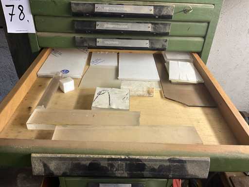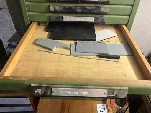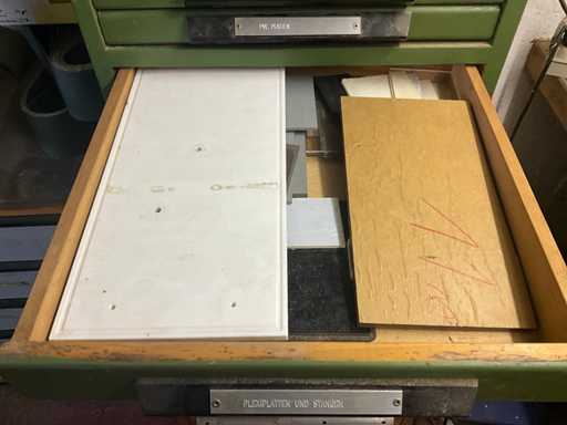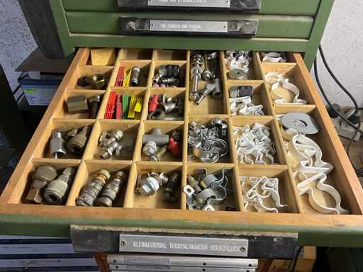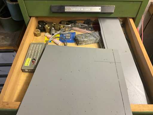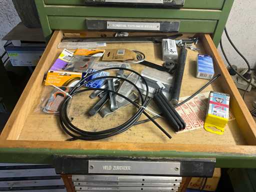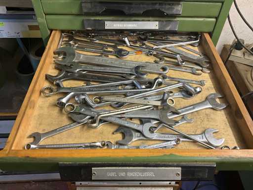With 15 drawers, contents tools and miscellaneous, keys available, weight estimated approx. 60 kg, quantity and further details see photos