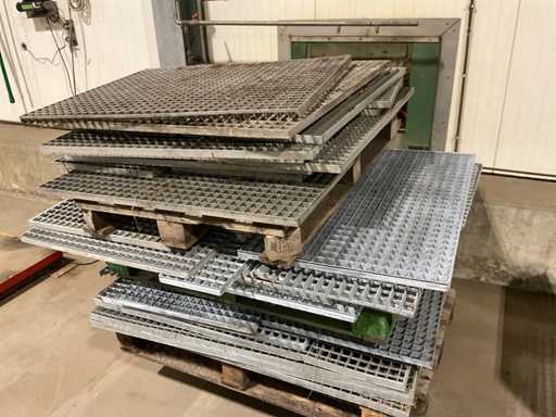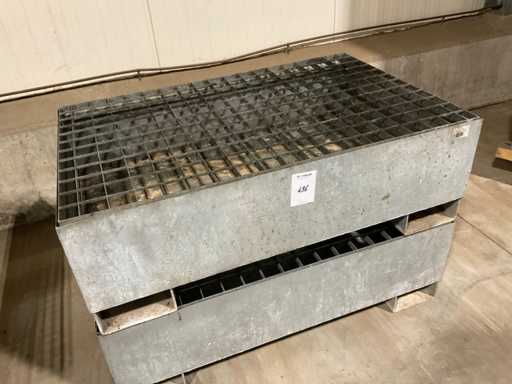 Galvanized steel, size approximately 1230x800x400mm with batch of grated floor parts in different types and sizes