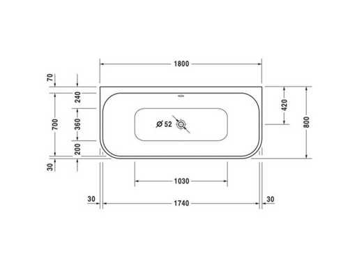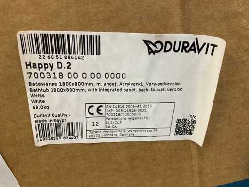 Duravit Happy D.2 180x80cm Semi-freestanding bath with panel