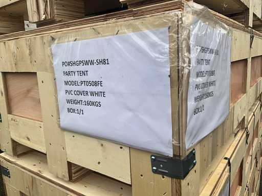 Unused; equipped with galvanized tubing frame Φ 37x0.8 mm connection pieces Ø42x1.2 material PVC 380 grams; color white; sidewall height 2.0 mtr; ridge height 2.9 mtr unused in wooden box 410x720x2050 mm
