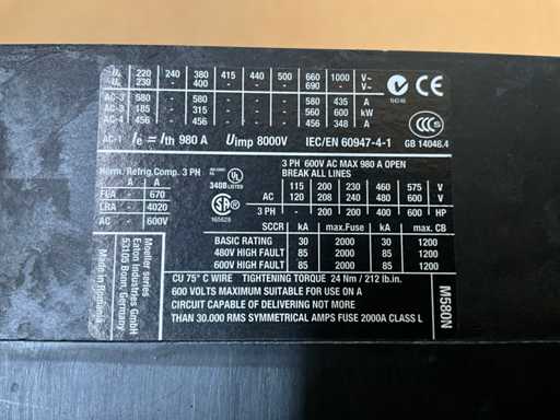 Eaton DIL M580 xtce580N / 980 A Magnetic switch