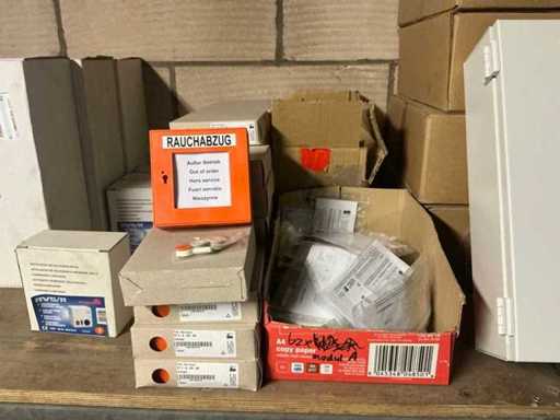 Various items including approx. 80x Apollo smoke detector; 4x fire control center; approx. 30x fire emergency button; approx. 3x Wallair Vitro fan with speed controller