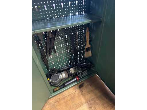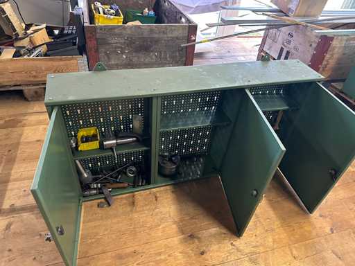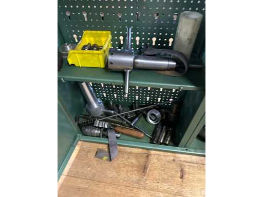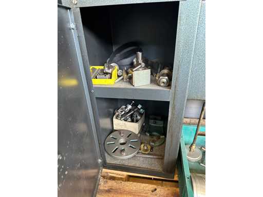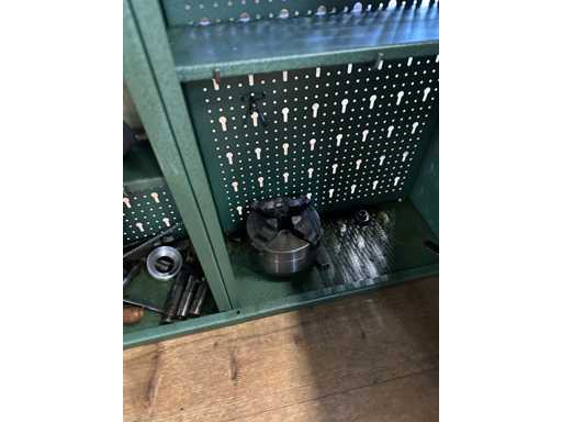 Lathe with some accessories according to pictures. Works perfectly. With wall cabinet full of accessories.