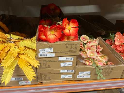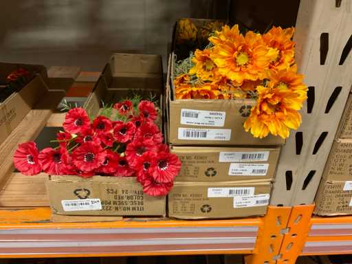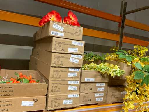 Contents of the pallet racking section Consisting of various artificial flowers Rack not included