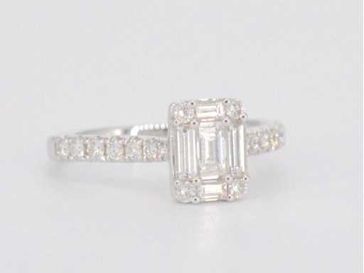 Entourage ring with baguette and brilliant cut diamonds