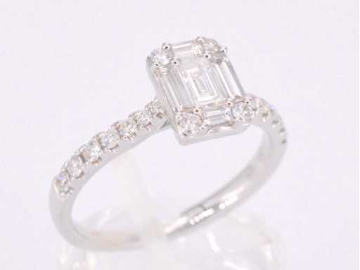 Entourage ring with baguette and Brilliant-cut diamonds