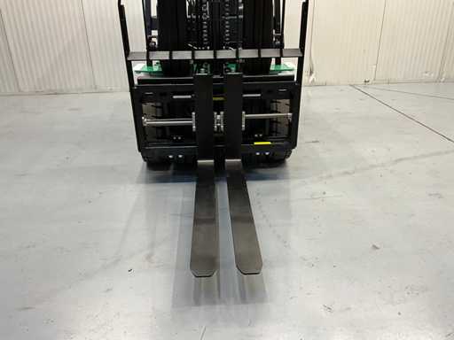 Thanks to the triplex mast with freelift, this forklift achieves a lifting height of up to 4.80 meters, without additional height restrictions in low spaces. The integrated side-shift and hydraulic fork positioner provide maximum flexibility when handling loads.