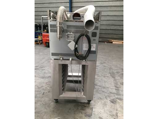 Oven on mobile frame 4 wheels, 2 of which have brake