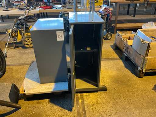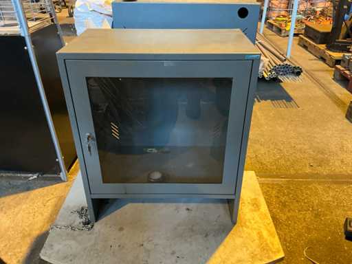 Eurokraft cabinet with window and keys 60x35x70cm, others with keys 35x 60x 95cm on foot.