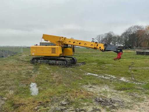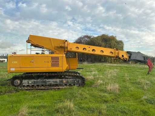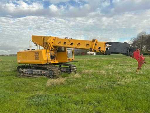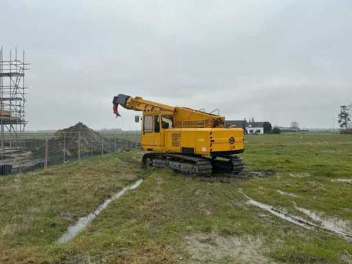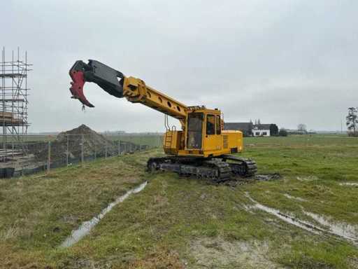 Equipped with: EWK TR2212 crawler excavator from 1994, produced by Eisenwerke Kaiserslautern GmbH. Equipped with Deutz diesel engine with six cylinders and a power of 174 kW. The machine has an operating weight of 23 500 kg, is equipped with a cab and excavator bucket, and has a boom length of 10 500 mm. Maximum digging depth 6,700 mm and maximum working range 11,000 mm. Track width 600 mm, read hours 18 111. Overall dimensions 10 800 × 3 000 × 3 300 mm. Serial number 027, CE marked. Includes CW40 bucket quick coupler and spare sliding mast