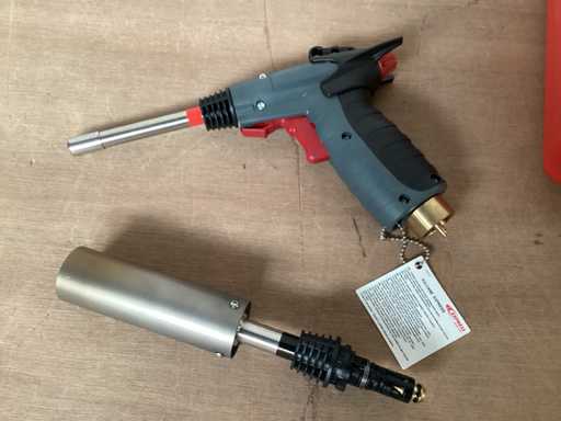 Hot air and flame burner with gas cartridge, in case, piezo igniter