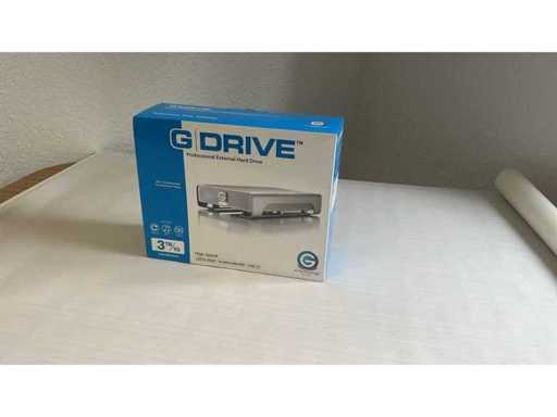 G-Drive Professional external hard drive with 3 TB of storage space in a high-quality aluminum housing. The drive is Mac formatted and Time Machine compatible, ideal for backup, photos, music, and other data. Equipped with 7200 RPM for fast performance, as well as ports such as eSATA 3Gbit, FireWire 800/400 and USB 2.0.
